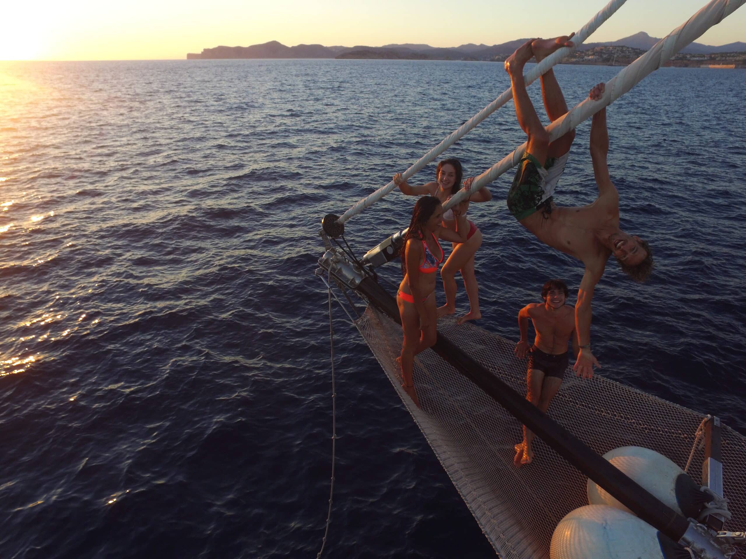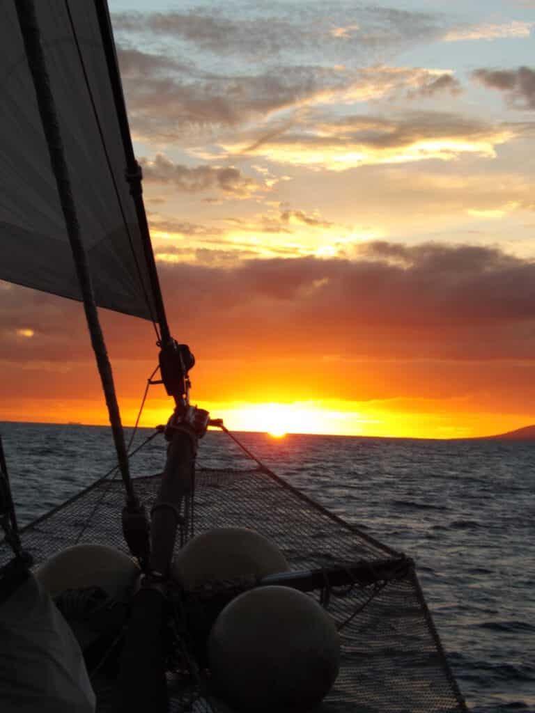 El balance acompasado del barco en la hora del crepúsculo, sentir la mar, el barco, la compañía de otros que como nosotros también están comunicando con la naturaleza de este momento mágico.